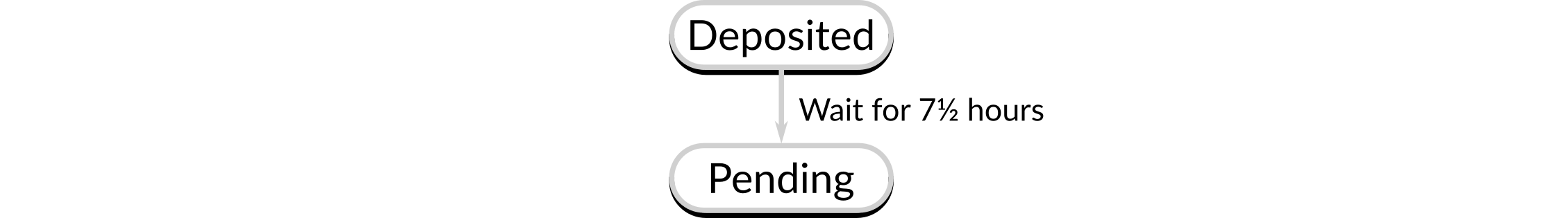 The validator will remain in the deposited state for approximately 7 and a half hours2, to ensure that there is no realistic chance of a chain reorganization affecting the Ethereum 1 transaction and potentially invalidating the deposit agreement. After this time the validator will move to the pending state3.